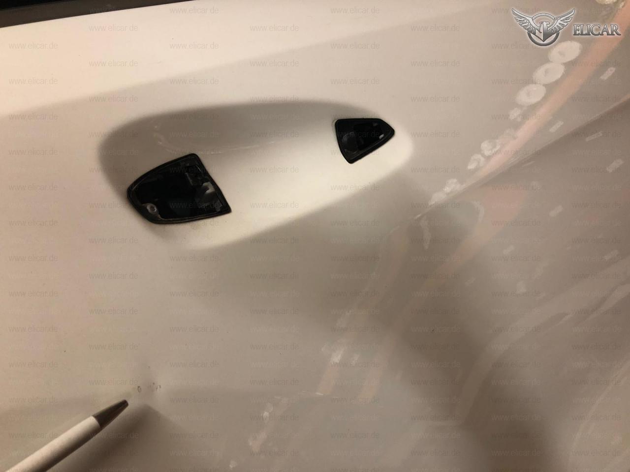 Tür weist eine kleine Delle auf.