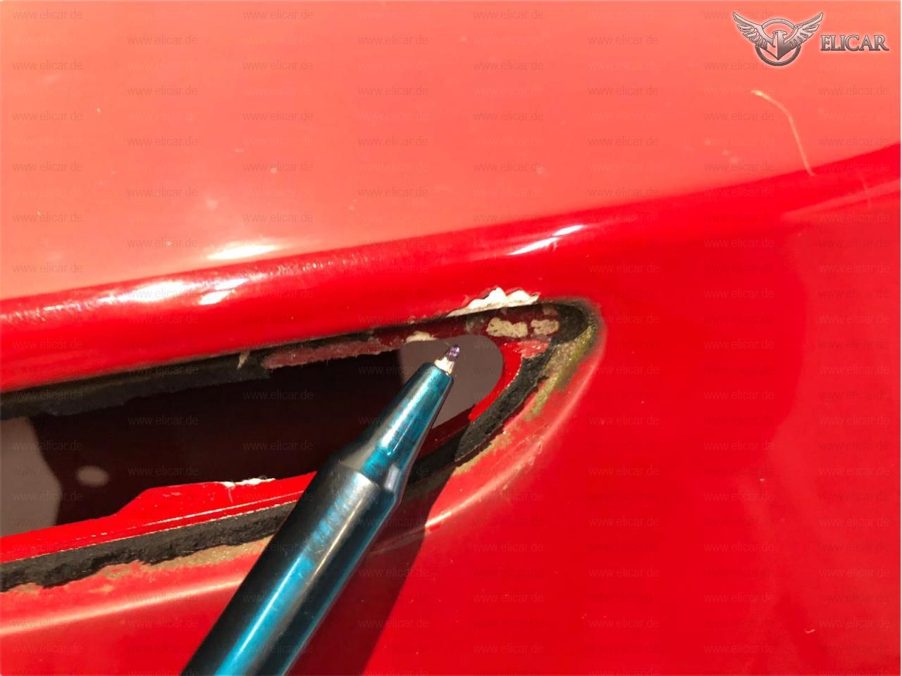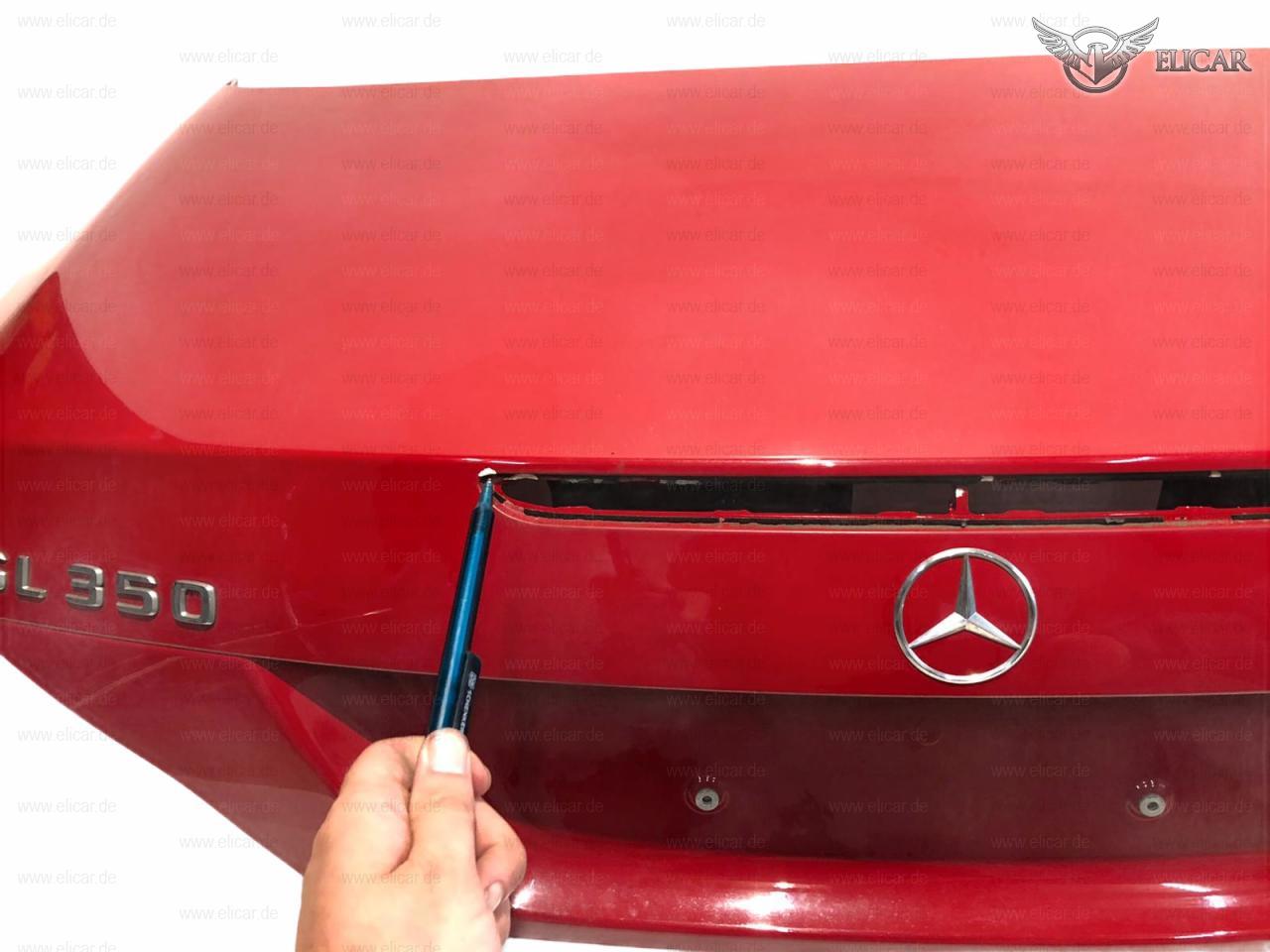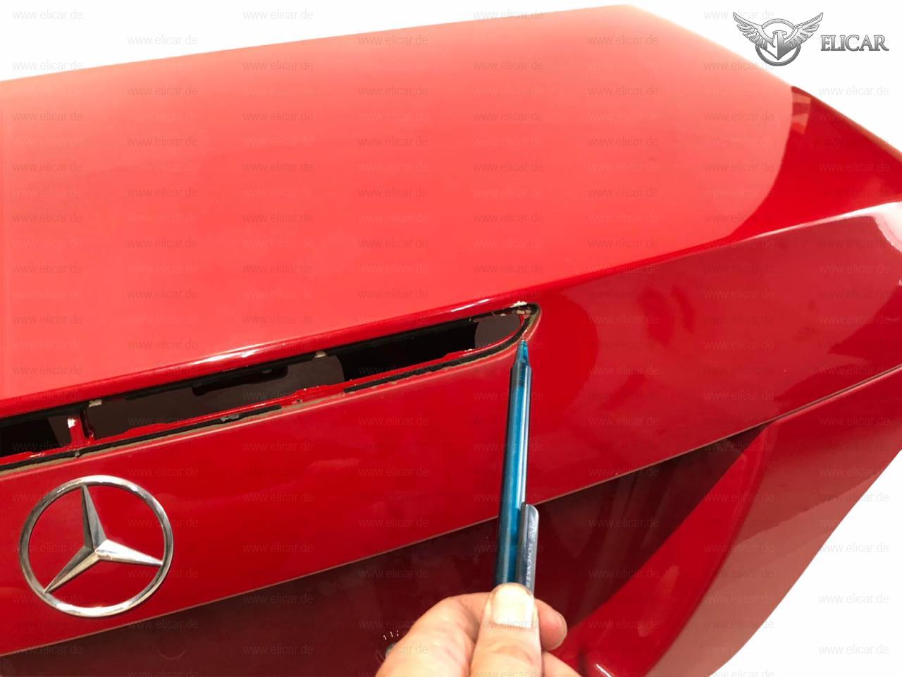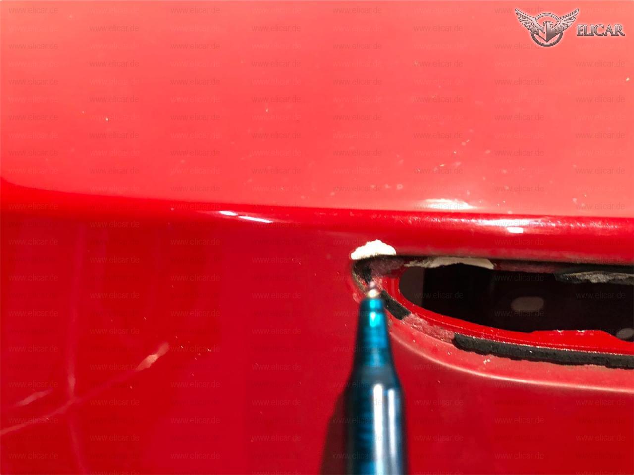 Heckdeckel weist zwei kleine Lackbeschädigungen oberhalb der dritten Bremsleuchte auf.
