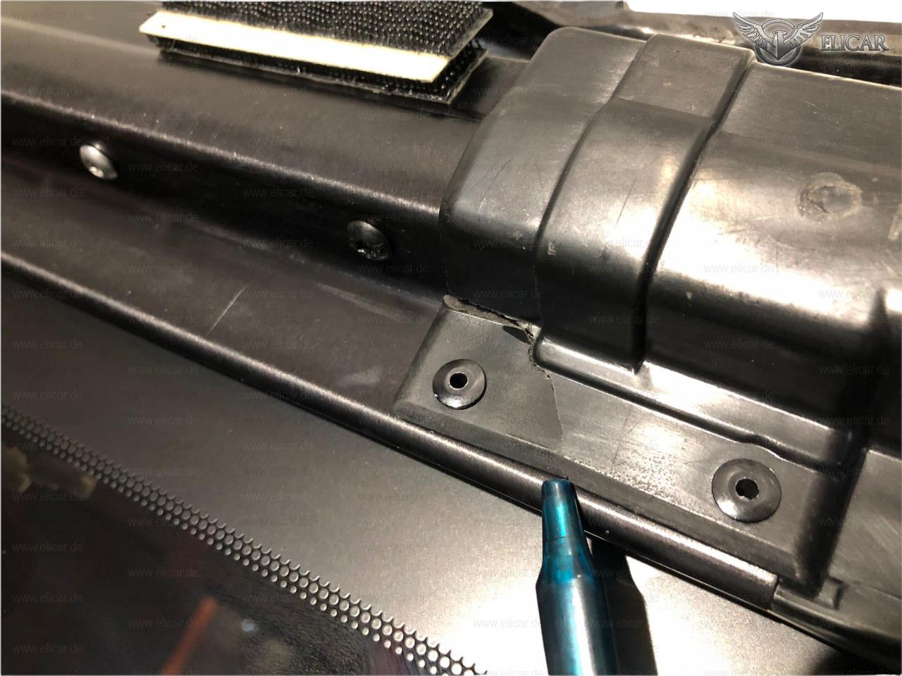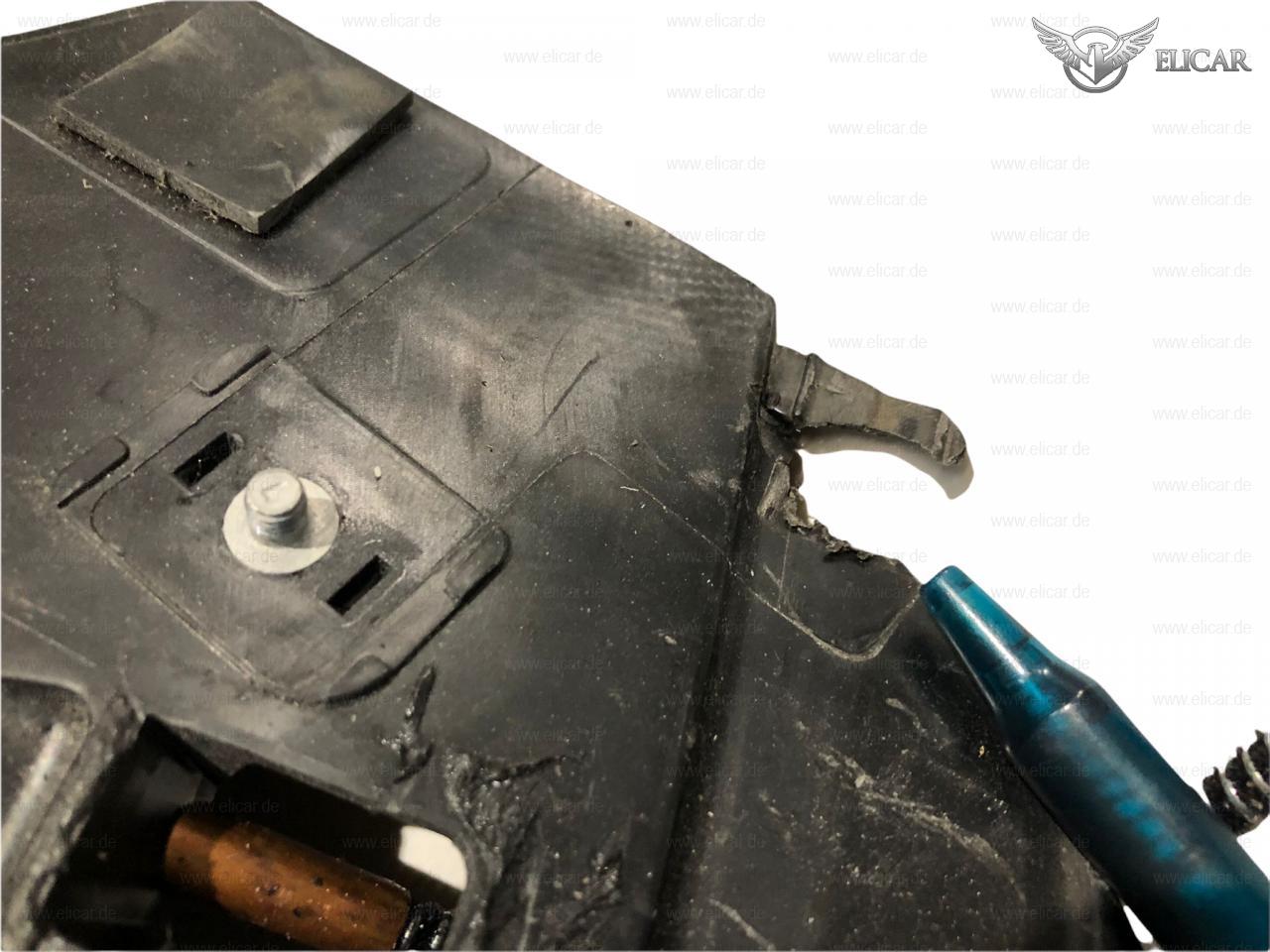 Ein kleines Stück Kunststoff ist gebrochen.