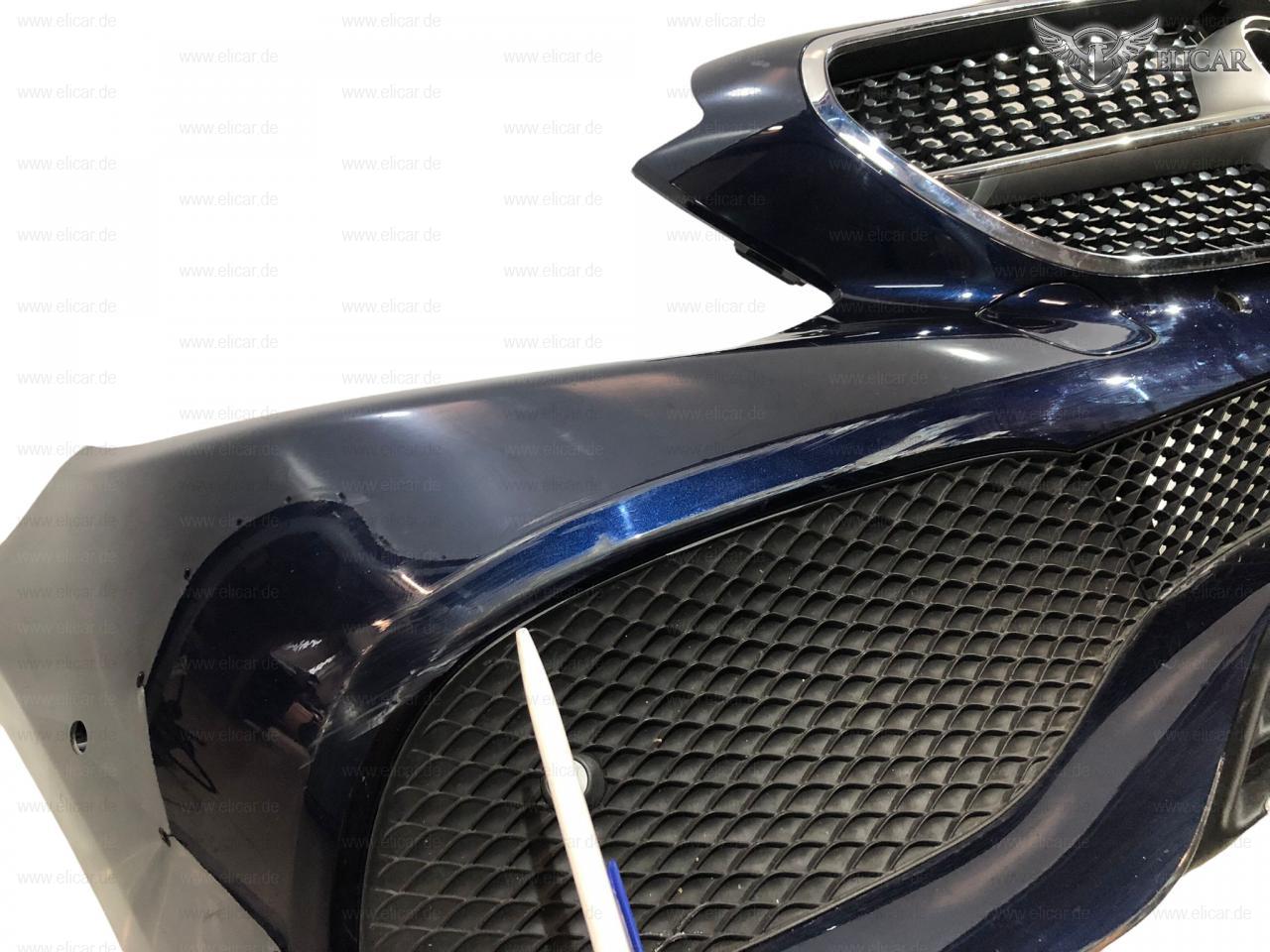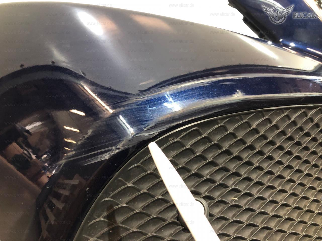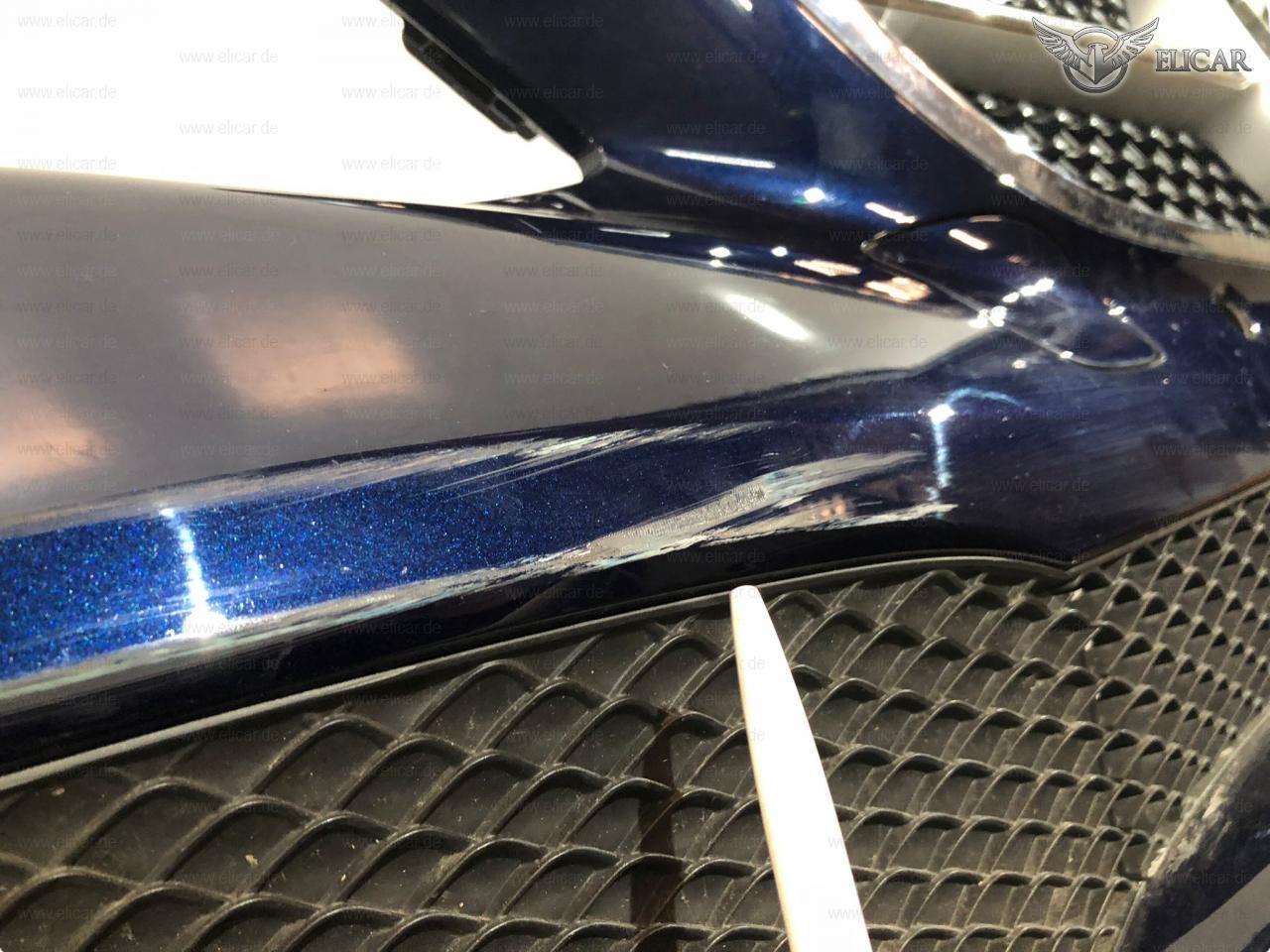Stoßfänger weist Kratzer auf und muss lackiert werden. An einem Halter fehlt ein Stück Kunststoff.
