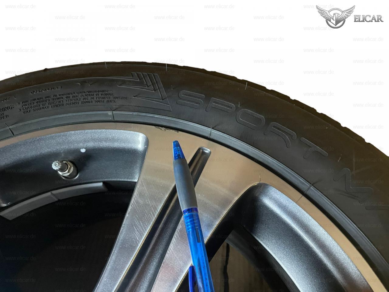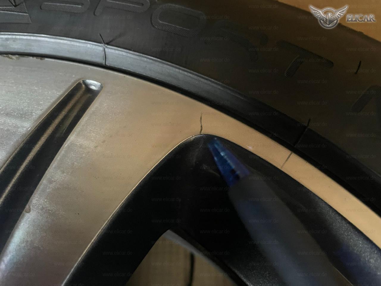 Eine Felge weist leichte Beschädigungen auf. Siehe Bilder