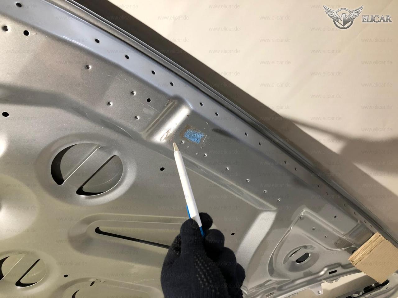 Motorhaube weist Lackbeschädigungen auf und muss gegebenfalls lackiert werden.