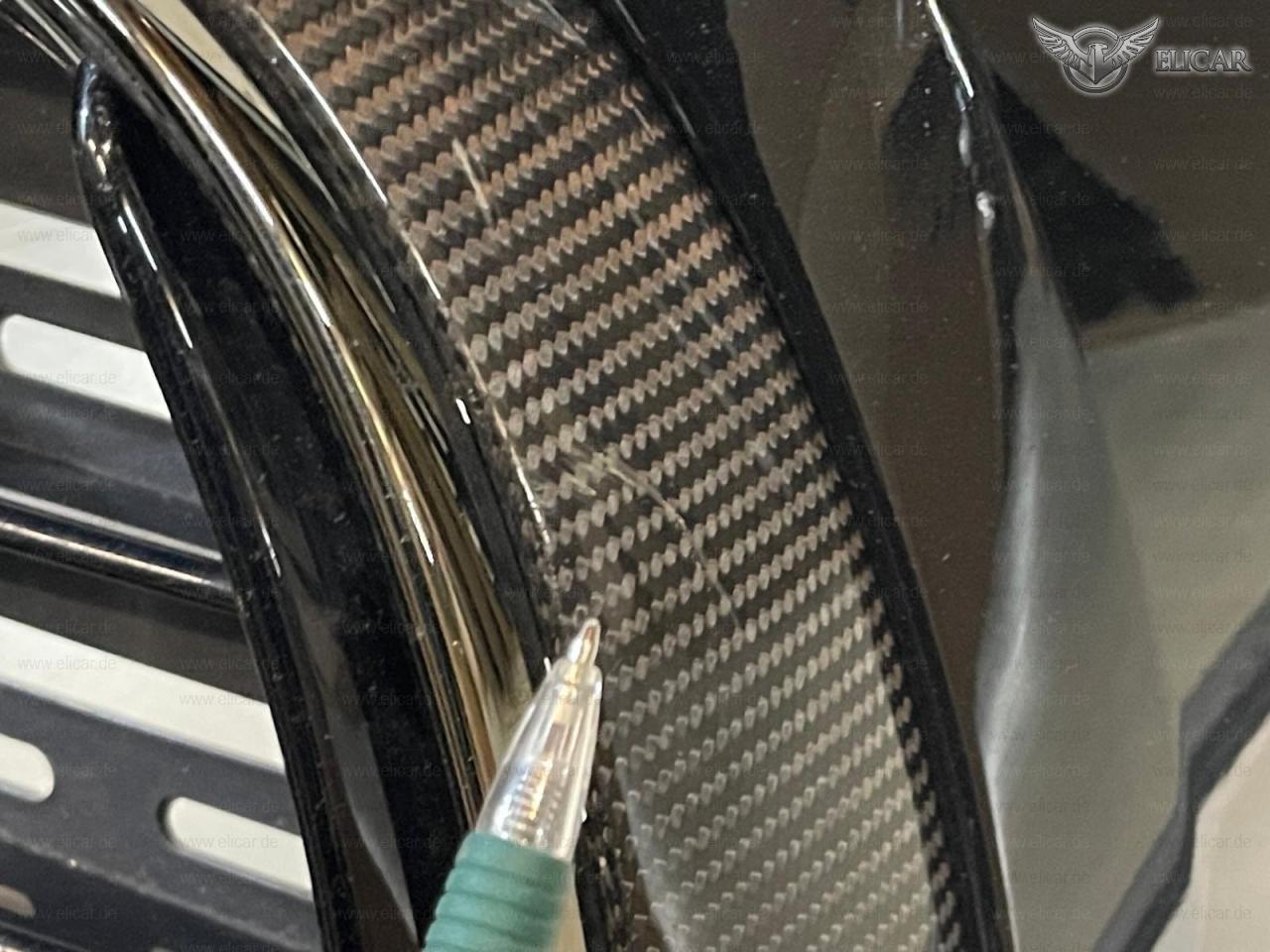 Ziergitter rechts, links in Carbon und Mitte Schwarz mit Zierleisten in Dark Chrome