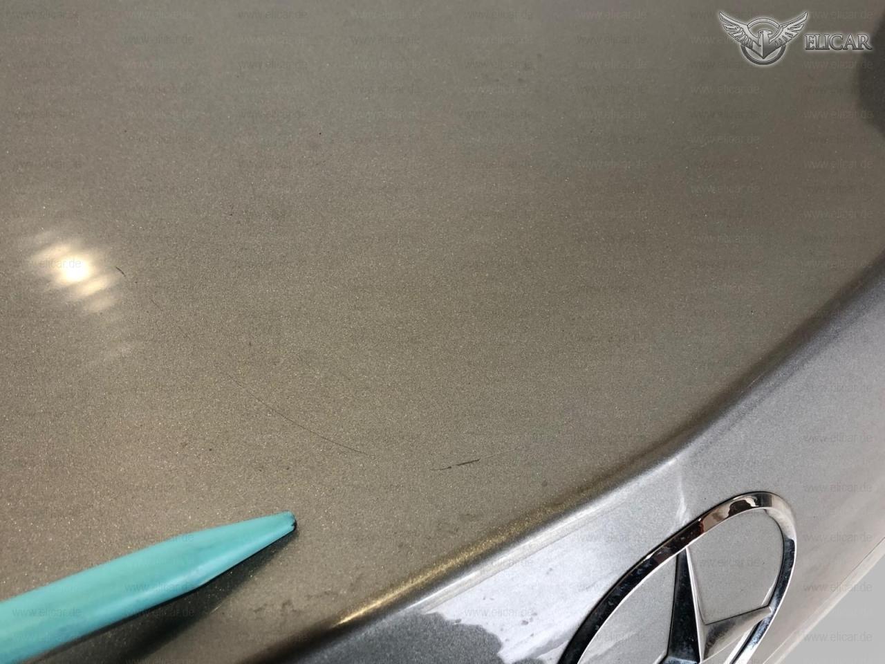 Der Heckdeckel weist Kratzer auf.